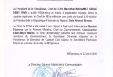 الرئيس التشادي يتوجه إلى أبوجا في زيارة عمل بدعوة من نظيره النيجيري