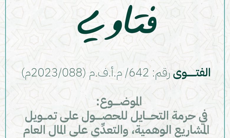 هيئة الفتوى تؤكد: التحايل للحصول على تمويل المشاريع الوهمية حرام شرعًا ويُعد تعديًا على المال العام