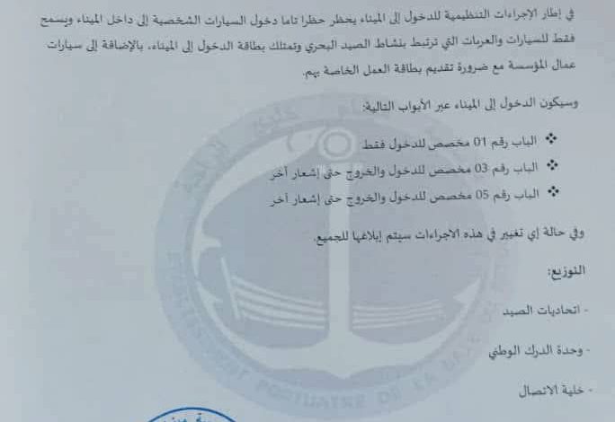 وأكدت إدارة الميناء أنه سيتم إبلاغ جميع الفاعلين بأي تغييرات قد تطرأ مستقبلاً على هذه الإجراءات التنظيمية.