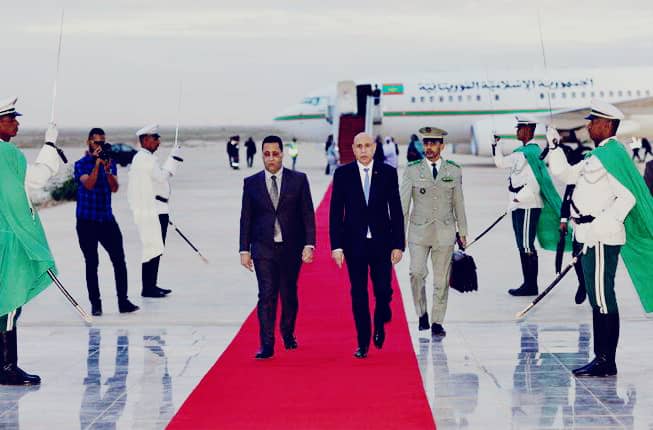 واستقبل فخامة رئيس الجمهورية بمطار نواكشوط الدولي أم التونسي من طرف معالي الوزير الأول السيد المختار ولد أجاي، ومعالي الوزير الأمين العام لرئاسة الجمهورية السيد مولاي ولد محمد لغظف، ومعالي الوزيرين المستشارين برئاسة الجمهورية السيد محمد محمود ولد الشيخ عبدالله بن بيه، والسيدة عيساتا با يحيى، ومعالي وزير العدل السيد محمد ولد اسويدات، ومعالي وزير الدفاع وشؤون المتقاعدين وأولاد الشهداء السيد حنن ولد سيدي، ومعالي وزير الداخلية وترقية اللامركزية والتنمية المحلية السيد محمد احمد ولد محمد الأمين، وقائد الأركان الخاصة لرئيس الجمهورية الفريق محمد المختار الشيخ آمني، والمديرة المساعدة لديوان رئيس الجمهورية السيدة غانديغا فاتيماتا، ووالي نواكشوط الغربية السيد امربيه ربو ولد بونن ولد عابدين، ورئيسة جهة نواكشوط السيدة فاطمة بنت عبد المالك.