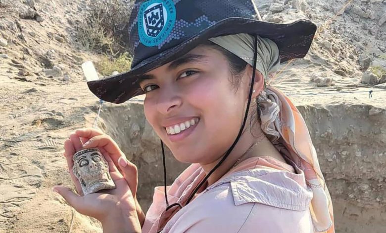القناع، المعروف باسم “قناع الفيانس”، يعود لأكثر من 3300 عام وُجد في قبر جماعي يضم امرأتين ورضيع.