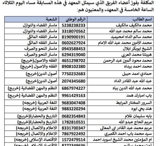 أعلن المعهد العالي للدراسات والبحوث الإسلامية، في إطار التحضير للمشاركة في المسابقة الثقافية الكبرى التي ستنظمها القناة الثقافية خلال شهر رمضان المبارك من عام 1447هـ، عن دعوة الطلبة المتفوقين الواردة أسماؤهم في اللائحة المعلنة للحضور إلى مقابلة اللجنة المكلفة باختيار المشاركين.