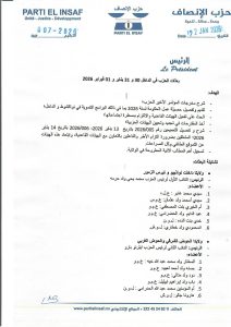 رئيس حزب الإنصاف يوقع مذكرة تتضمن لائحة البعثات الحزبية إلى الداخل