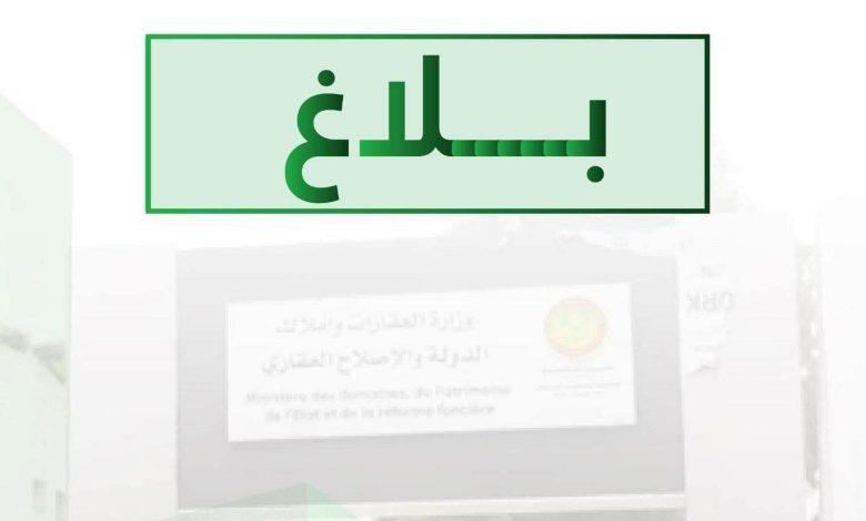 أعلنت وزارة العقارات وأملاك الدولة والإصلاح العقاري، في إشعار موجّه إلى المعنيين، ضرورة تقدّم جميع الأشخاص الذين يملكون رسائل تعويض في مناطق المداخلات بعدد من القطاعات، بطلبات إلى إدارة العقارات والتسجيل من أجل الحصول على رخص الحيازة، وذلك في أجل أقصاه 30 أبريل 2026.