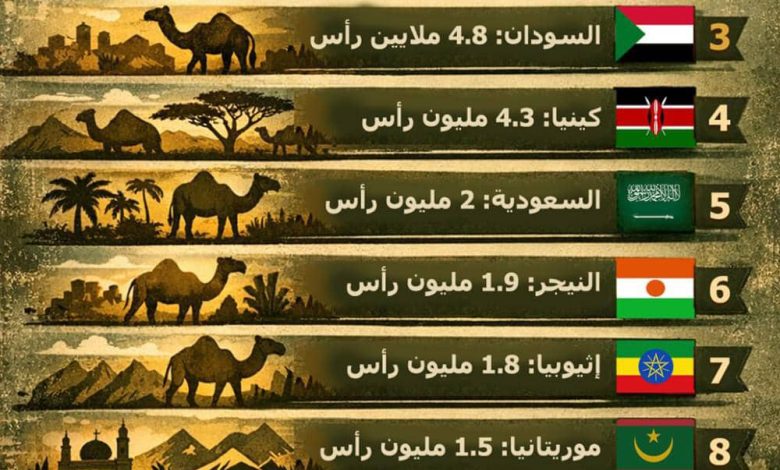 تشاد تتصدر قائمة أكبر الدول امتلاكاً للإبل عالمياً وموريتانيا ضمن العشر الأوائل
