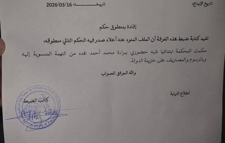 وبموجب الحكم الصادر، قررت المحكمة تبرئته من هذه التهم، مؤكدة عدم ثبوت ما نُسب إليه، مع إلزام الدولة بتحمل الرسوم والمصاريف القضائية المرتبطة بالدعوى.