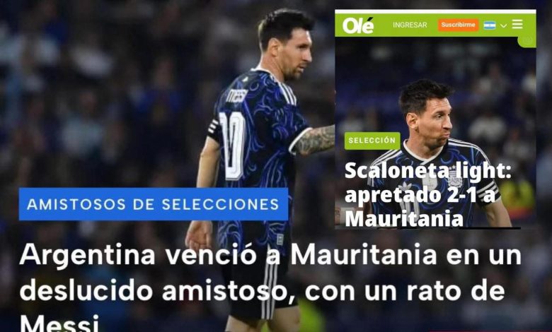 من جهتها، عنونت صحيفة “Olé” الشهيرة تقريرها بـ”معاناة في لا بومبونيرا.. فوز باهت أمام موريتانيا الشجاعة”، منتقدة الأداء الأرجنتيني الذي بدا مكبلًا أمام التنظيم الدفاعي المحكم للمنتخب الموريتاني.