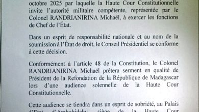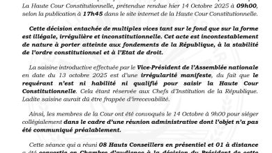 أعلن مجلس الرئاسة لإعادة تأسيس جمهورية مدغشقر أنه أخذ علمًا بقرار المحكمة الدستورية العليا رقم 10-HCC/D3 الصادر في 14 أكتوبر…
