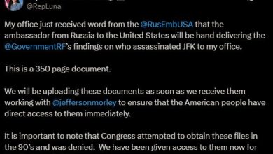 ستُسلّم السفارة الروسية يدويًا النتائج الرسمية للكرملين بشأن اغتيال جون كينيدي – وهي وثيقة من 350 صفحة لم يسبق أن…