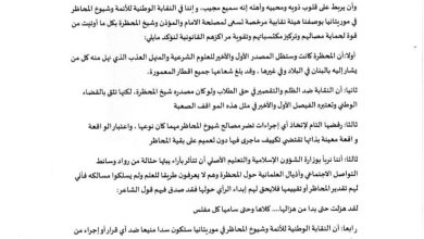 أصدرت النقابة الوطنية للأئمة وشيوخ المحاظر في موريتانيا بيانًا للرأي العام، أعربت فيه عن استنكارها الشديد لما وصفته بـ”استهداف” شيخ…