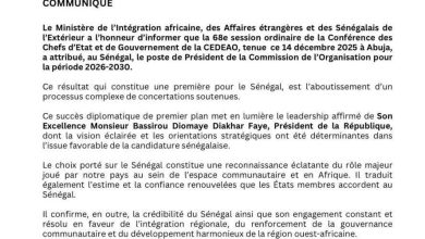 أعلنت وزارة الاندماج الإفريقي والشؤون الخارجية والسنغاليين في الخارج، أن مؤتمر رؤساء دول وحكومات المجموعة الاقتصادية لدول غرب إفريقيا (الإيكواس)،…