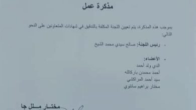 أصدر المدير العام للوكالة الموريتانية للأنباء، السيد مختار مليل جا، مذكرة عمل جديدة أعلن من خلالها عن تعيين لجنة مكلفة…
