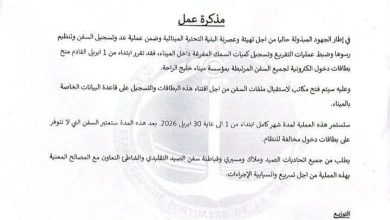 أعلنت مؤسسة ميناء خليج الراحة عن شروعها في تنفيذ إجراءات تنظيمية جديدة تهدف إلى تعزيز حكامة النشاط داخل الميناء، وذلك…
