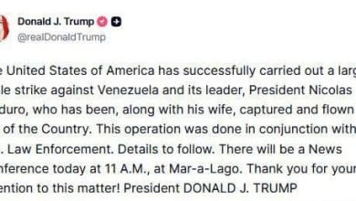 أعلن الرئيس الأمريكي دونالد ترامب، في منشور منسوب إليه على منصته، أن الولايات المتحدة نفذت ما وصفه بـ“عملية عسكرية واسعة…