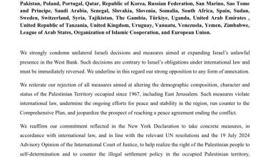 بيان دولي مشترك يندد بالقرارات الإسرائيلية الأخيرة في الضفة الغربية ويؤكد رفض أي ضم أحادي