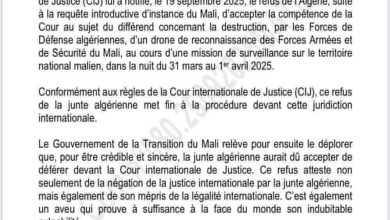 أعلن حكومة مالي الانتقالية في بيان لها، أن الجزائر رفضت، بتاريخ 19 سبتمبر 2025، قبول اختصاص محكمة العدل الدولية في…