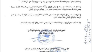 وزارة العمل الاجتماعي تطلق عملية ليلية لحماية الأطفال من مخاطر الشوارع