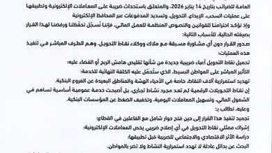 تجمع نقاط التحويل الرقمي يطالب بتجميد قرار الضريبة الإلكترونية وفتح حوار شامل